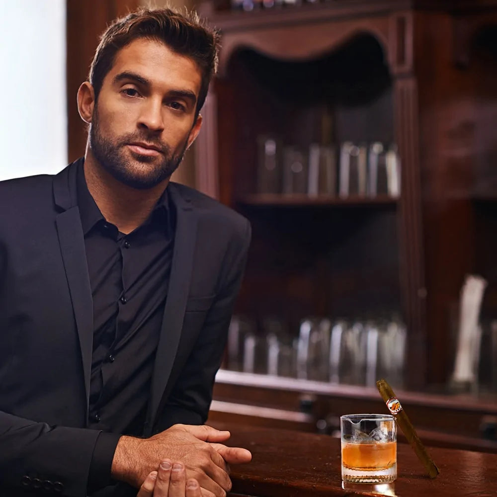 Make a bold statement with our whiskey glass cigar cup. Ideal for special occasions or a relaxing evening at home, this unique glass showcases your refined taste and attention to detail, offering a stylish way to enjoy two classic pleasures simultaneously.